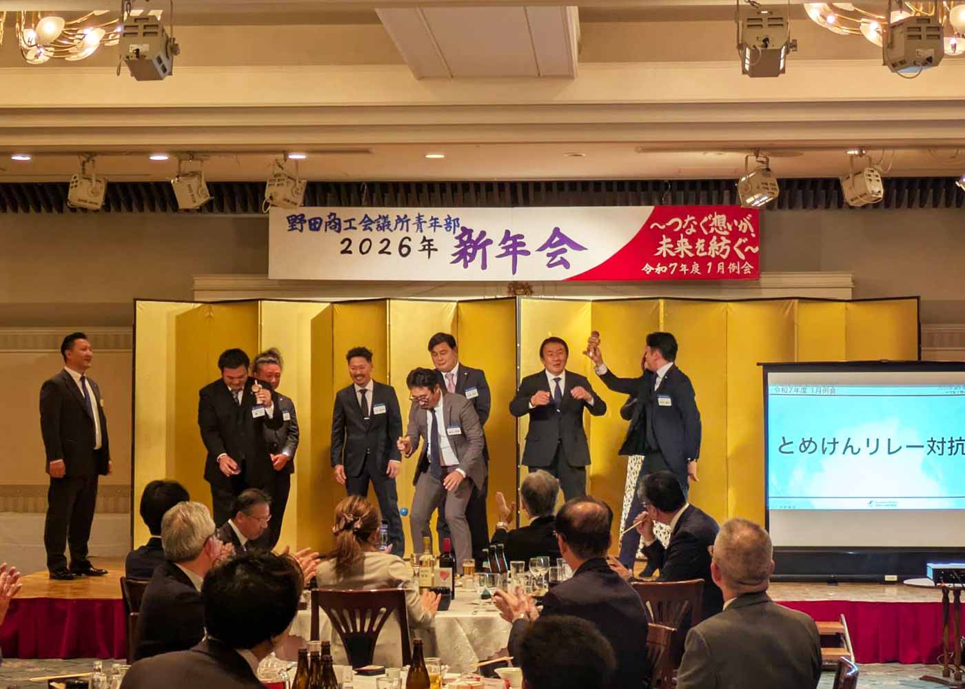 また、新入会員紹介では「とめけんリレー対抗戦」を実施し、新入会員と現役青年部メンバー、来賓・OBの方々がチームを組んで参加することで、会場には笑顔と一体感が生まれ、青年部ならではの交流を深める企画となりました。